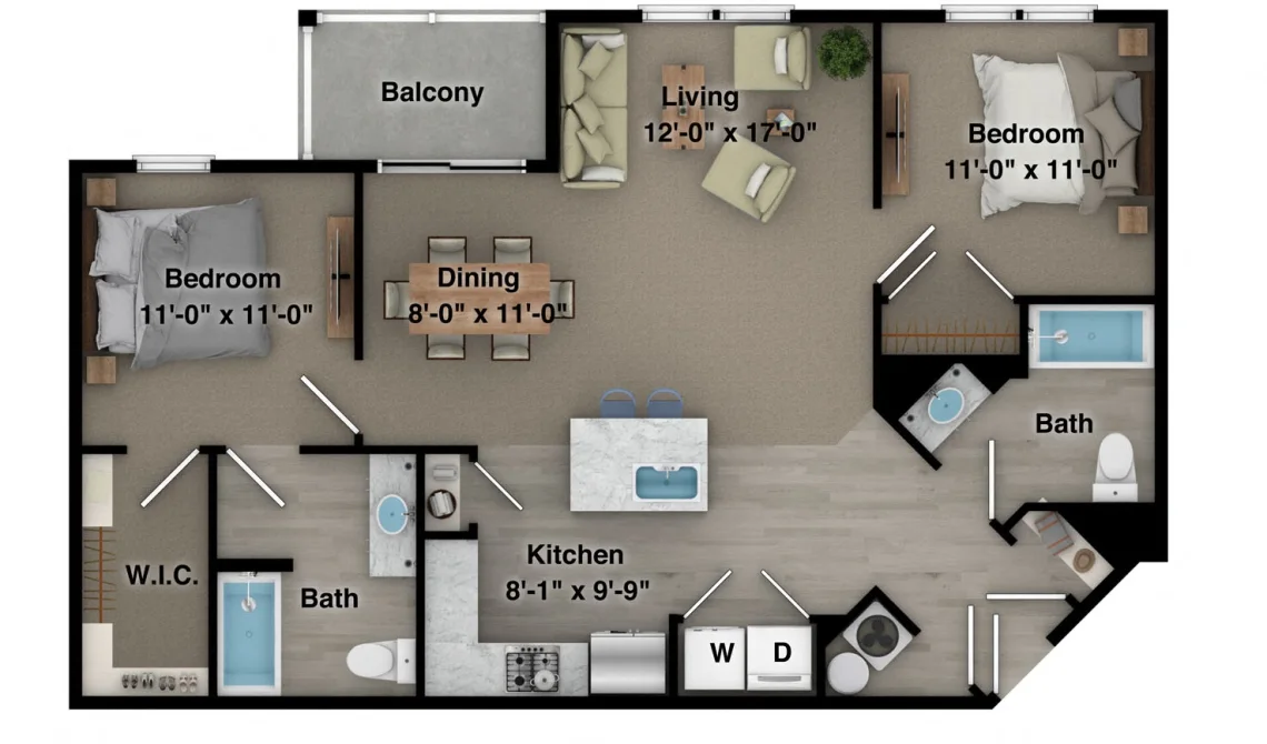 Explore our 1, 2, & 3 bedroom floor plan below to find the perfect place to call home! Call today to book your personalized tour.